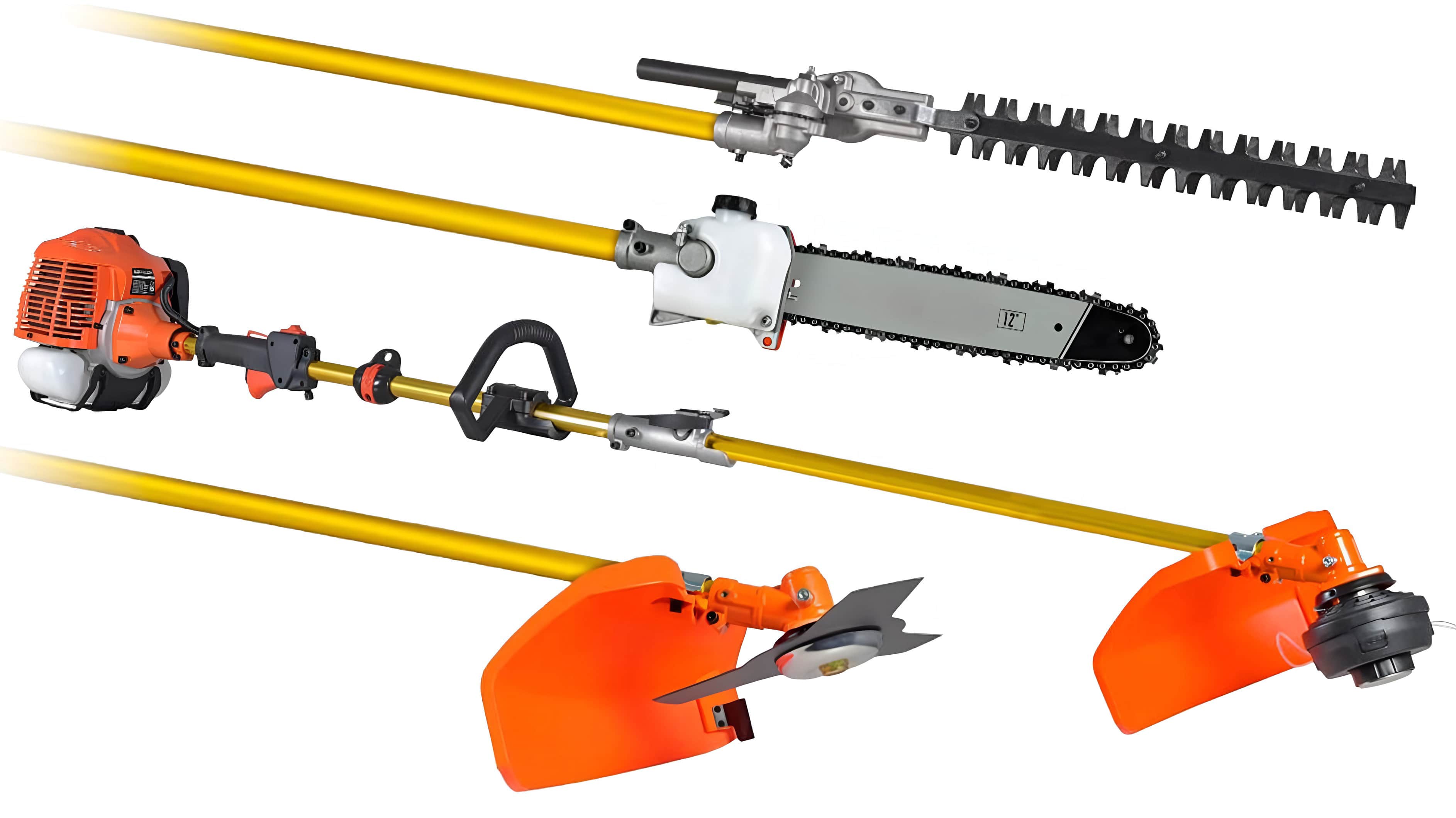 Grazie ai numerosi attrezzi intercambiabili, questo decespugliatore si adatta a ogni esigenza. Può essere utilizzato come decespugliatore con 3 lame, testina a filo, motosega e tagliasiepi, offrendo un'ampia versatilità per affrontare qualsiasi tipo di lavoro nel giardino.